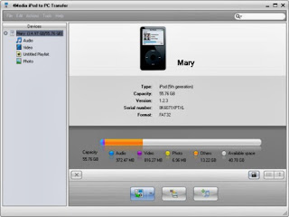 Descrição: Transfira música, vídeo e foto em vários formatos para o seu iPod com 4Media iPod to PC Transfer. Mais prático que o iTunes, aplicativo padrão para este tipo de procedimento, pois, além de fazer a sincronização, converte os arquivos de formato não compatível com o reprodutor para que ele possa reproduzir tudo, sem problemas, evitando que você tenha que usar um aplicativo de terceiros para este tipo de terefa. Além disso, é possível transferir dados do aparelho portátil para o computador, importar dados do iTunes e gerenciar as listas contídas no iPod.